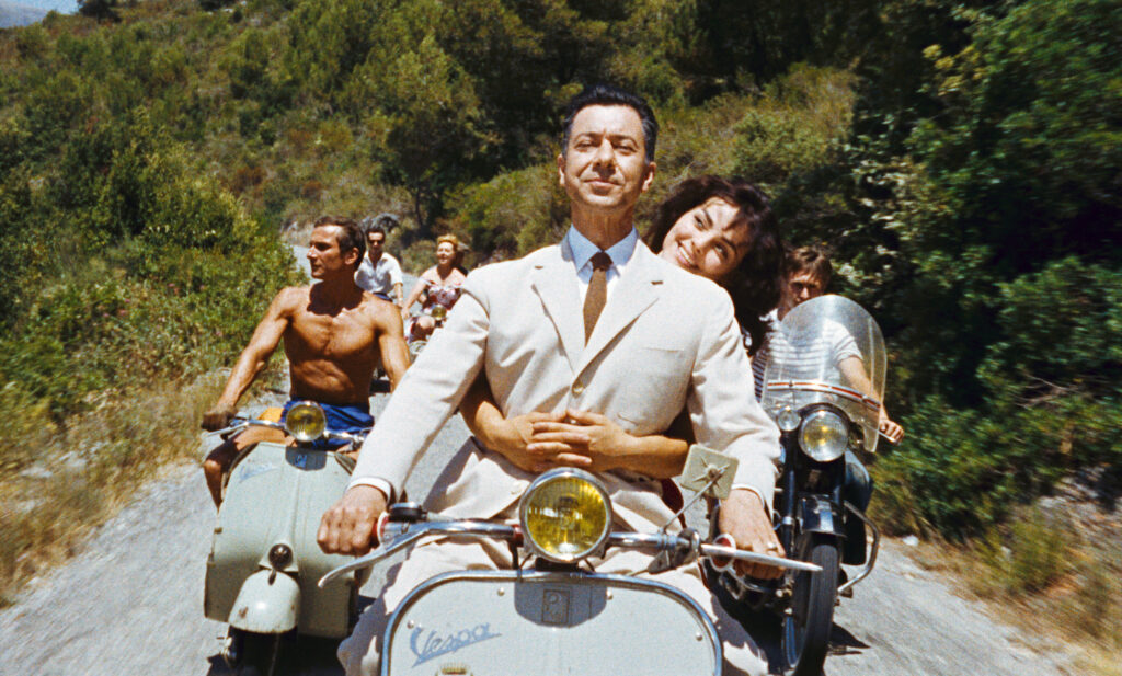 自らの会社「コンパニー・ジャン・ルノワール」の製作で、自分で書いたオリジナル脚本を自分で監督するのだから、これほどのびのびと撮られた作品もないだろう。ポール・ムーリスとカトリーヌ・ルーヴェルの年の差カップルのまわりには、旧知の俳優たちを配し──20年前に『ゲームの規則』に出演したポーレット・デュボスト、さらには25年前に『トニ』でタイトルロールを務めたシャルル・ブラヴェットまで重要な役で登場している──ここに“ルノワールの宴”がにぎにぎしく開かれた。楽しさを煽り立てるリズムの効いた音楽はやはり長年の盟友、ジョゼフ・コスマの作曲による。
