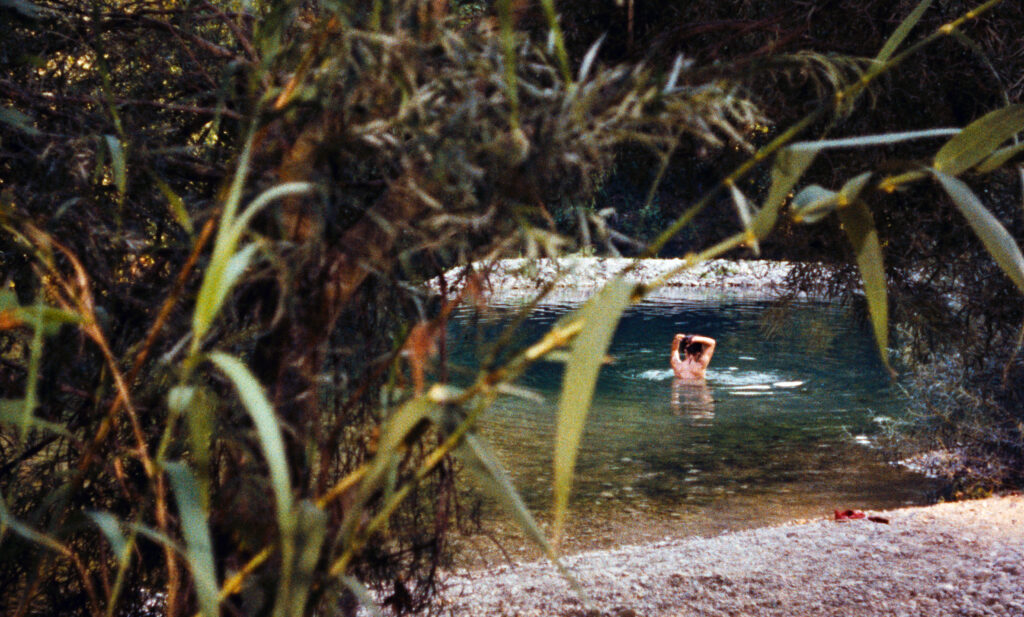 つむじ風が巻き起こるとあら不思議、女たちは「カッカしてきたわ」とにわかに欲情を催す。野外での昼食の光景が男女のまぐわいに転じていくなりゆきは、戦前の珠玉作『ピクニック』を思い起こさせる。だが『ピクニック』では、主人公の若い男女が抱擁し恍惚のときを迎えたその直後、一天にわかにかき曇って激しい雨が降り始め、休日は台なしになってしまう。『草の上の昼食』はそんな“涙雨”とは無縁だ。空はいつも晴れ上がり、からりと爽やかな空気にはおそらくオレンジの木や野草の匂いが甘く漂っているはずだ。画面にはオリーヴの梢が繰り返し登場し、地面に寝そべって木蔭で気持ちよさそうに昼寝する男たちの姿が描かれる。