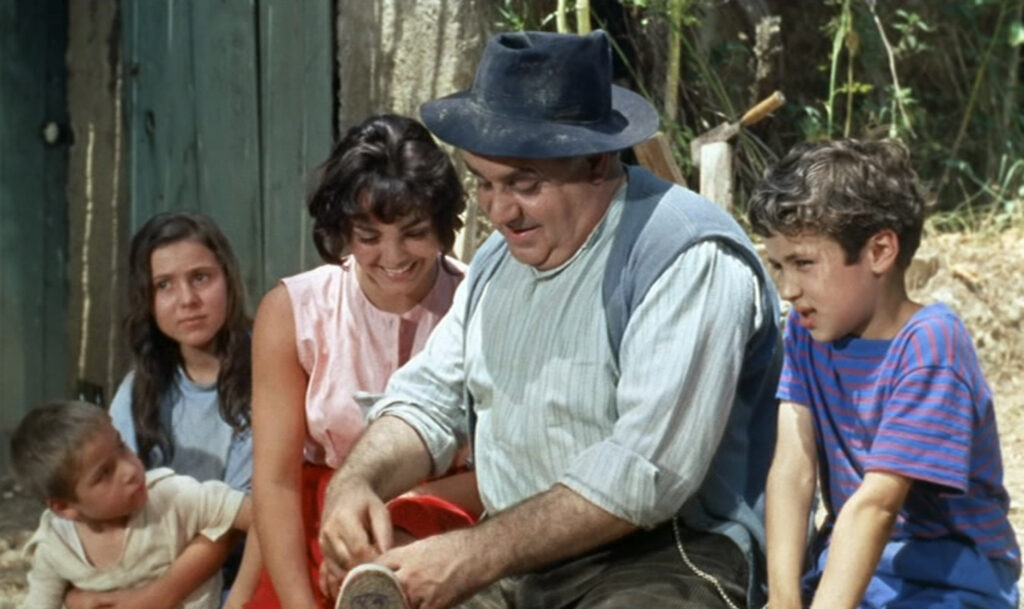 そこでルノワールは神の力にすがろうとする。神といってもそれはキリスト教と関係のない、古代ギリシアでパーン、古代ローマではファウヌスと呼ばれ、サチュロスとも同一視された、半人半羊の牧神である。シャルル・ブラヴェット演じる、愛嬌のある顔の羊を連れた老人は、田園を住みかとするこの牧神の化身にほかならない。30年前の『素晴らしき放浪者』以来、牧神を思わせる笛を吹く人物はルノワール映画のそこかしこに姿を見せ、一種のトレードマーク的存在となってきた。しかしこの作品においてのように、直接的に物語に介入し、淫らな風を吹かせて登場人物たちの身の上に重大な影響を与えるなどということはかつてなかった。地中海の陽光あふれ、豊かな水に潤されたカーニュの地でこそ、エロスと多産をつかさどる古代の牧神は本領を発揮し、情熱を忘れかけた人間たちを正道に連れ戻してくれるのだ。