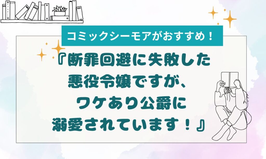 『断罪回避に失敗した悪役令嬢ですが、ワケあり公爵に溺愛されています!』 『断罪回避に失敗した悪役令嬢ですが、ワケあり公爵に溺愛されています!』を読むならコミックシーモアで決まり♪理由を紹介! コミックシーモアなら新規会員登録するともれなく70... -