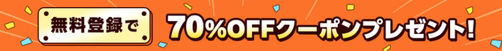 ・金額上限なし!会員登録で70%オフクーポンが貰える!