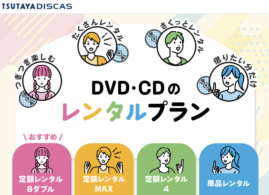 ツタヤディスカスにはさまざまなレンタルプランがあり、中でも「定額レンタル8ダブル」プランなら、初回登録時に30日間の無料トライアル期間が付与されるため特にお得♪