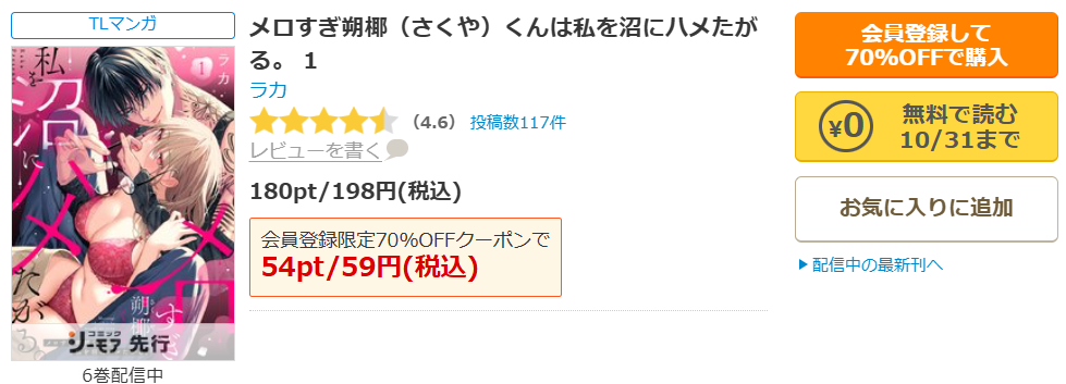 結果、『メロすぎ朔椰(さくや)くんは私を沼にハメたがる。』を読むことができるのは、コミックシーモアのみでした。