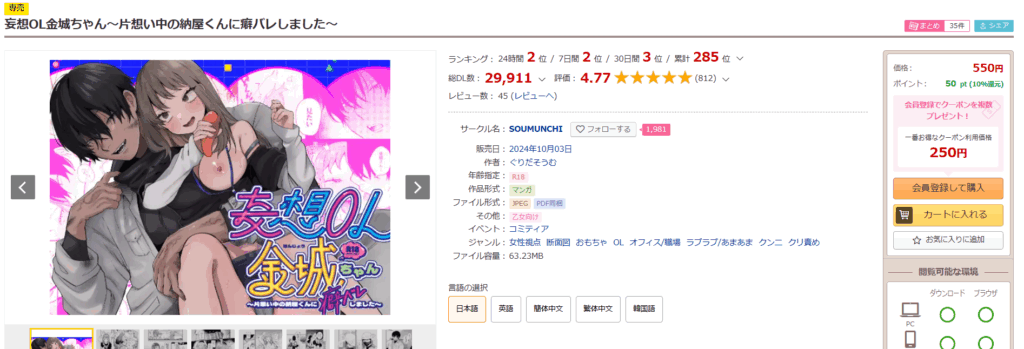『妄想OL金城ちゃん』を読むならDLsiteで決まり♪理由は?