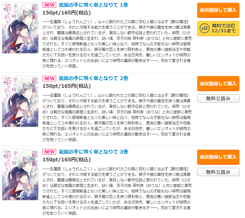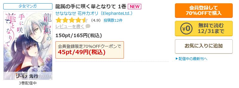 『龍属の手に咲く華となりて』なら、1話165円がわずか49円に!